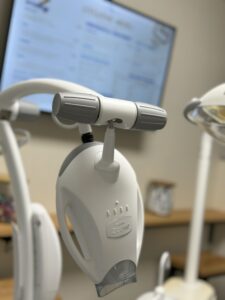 For patients looking for an instant sparkle, we recommend in-surgery whitening. For in-surgery whitening, we will use an LED accelerator light to break down the molecular bonds that are causing the staining on your teeth. It works 40% better than non-light activated whitening systems.